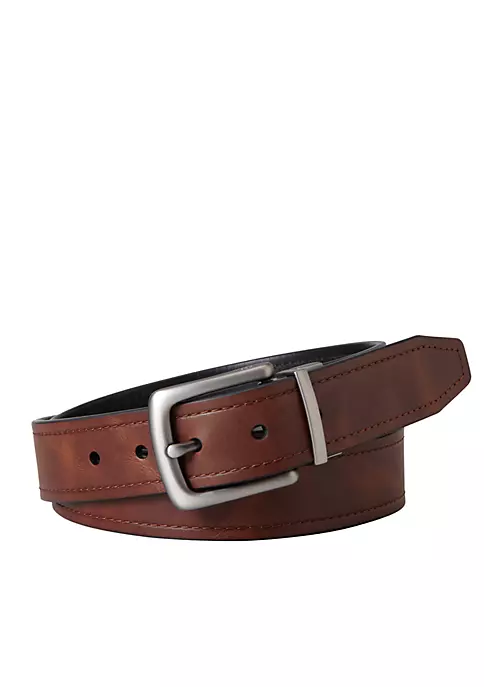 Crafted in rich leather, this versatile reversible belt by Fossil® is actually two belts in one. Perfect for traveling and packing lightly, this belt features brushed silver-tone hardware and stitch detailing.
