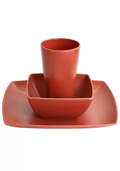The Gibson Home Grayson Melamine 12 Piece Dinnerware Set in Orange is great for casual dining. Whether you are eating outside with family or serving your kids, this set is the perfect no worry solution! Constructed with melamine material, each piece is lightweight and durably made. Square design with raised edges keeps food in place, making it easy to take from kitchen to the dining table or outside without tipping food over. And to top it off, dishwasher safe design makes clean up a breeze! Item Dimensions: 11.80″ x 10.60″ x 5.80″ Item Weight: 5.20lbs
